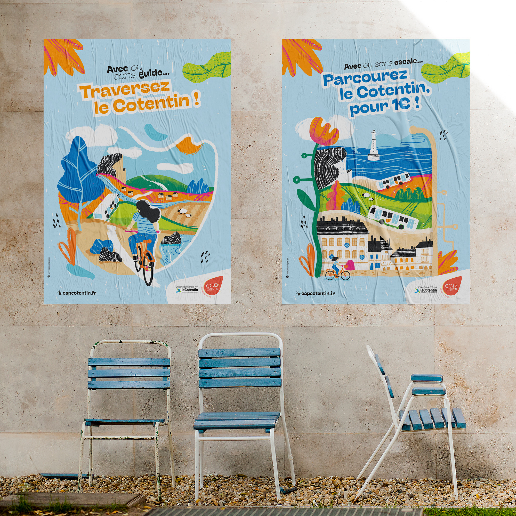 Création de l’identité visuelle de la campagne de communication globale estivale de Cap Cotentin, pour la communauté de communes de Cherbourg en Cotentin